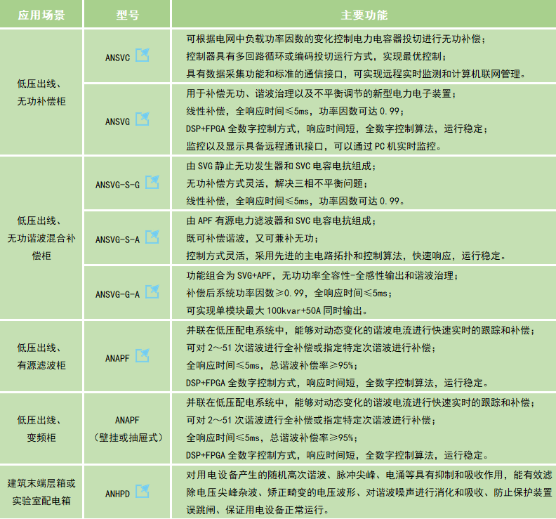 目前,根據行業的發展情況以及市場的需求,ANSVG-S-A系列混合動態消諧補償裝置應用新技術,以SVC的經濟性和APF濾波的有效性等特點為基礎,將兩者技術相結合,突破傳統無功補償技術,在有效降低成本的同時,實現諧波治理與無功補償。