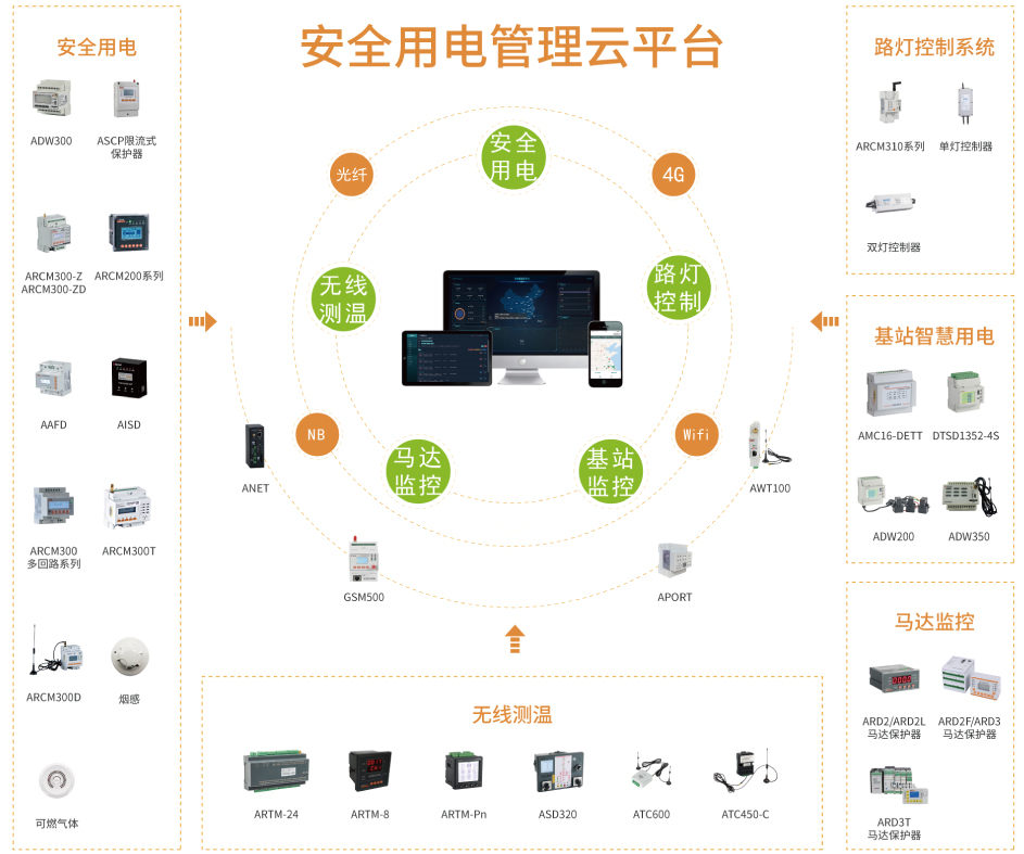 基于安全用電云平臺,演化出了無線測溫,基站智慧用電,路燈控制系統和馬達監控云平臺。