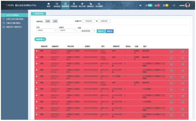 安科瑞Acrelcloud-6500銀行業安全用電管理云平臺是針對我國應行業各場景電氣火災事故頻發而創新的一套電氣火災預警和預防管理系統,該系統是基于移動互聯網、云計算技術、通過物聯網傳感終端,將銀行業營業廳、ATM室等 各種人員密集場所的剩余電流、過壓、過載、過流、過溫、欠壓、打火、缺相、設備不在線等情況下的電氣安全數據,及時傳輸至銀行業安全用電管理云服務器,為用戶提供不間斷的數據跟蹤、統計分析和安全監管,將平臺發現各種安全 隱患信息及時告警信號,并推送給企業有關人員,以便其及早檢查和消除隱患,真正做到防患于未然。