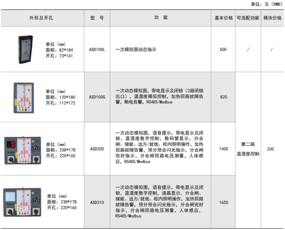 ASD 系列開關柜綜合測控裝置用于 3~35kV 戶內開關柜,適用于中置柜、手車柜、固定柜、環(huán)網(wǎng)柜等多種開關柜。具有一次回路模擬圖及開關狀態(tài)指示,高壓帶電顯示及核相,自動溫濕度控制,加熱回路故障告警,無線測溫,人體感應自動照明,語音提示,電參數(shù)測量及 RS485 通訊接口等眾多功能,集操作、顯示于一體。產(chǎn)品按功能分為ASD100L、ASD100G、ASD200、ASD300、ASD310、ASD320 六種型號。