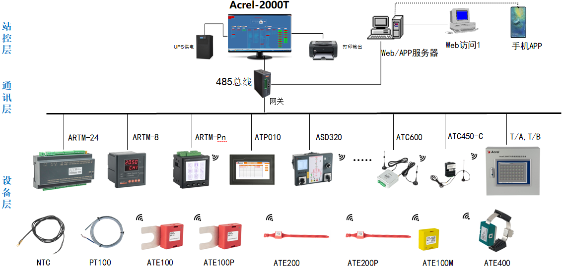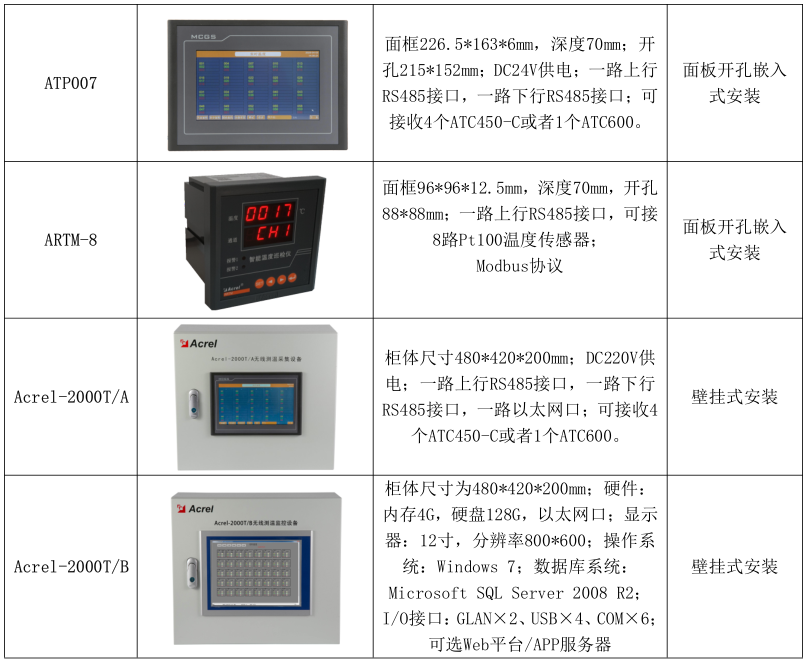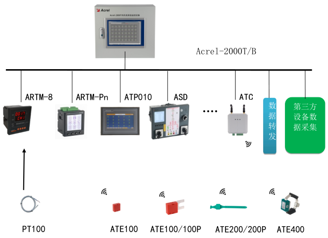 Acrel-2000T/A無線測溫集中采集設備 本設備具有實時監測、超溫告警等功能,可以幫助值班人員盡早發現問題,消除隱患,確保電力設備的安全運行,適合用在廣泛電力物聯網、鋼廠、化工、水泥、數據中心、醫院、機場、電廠、煤礦等廠礦企業、變配電所,為電力設備的安全、經濟、可靠運行提供了全新的解決方案。 Acrel-2000T/B無線測溫監控設備 本設備具有實時監測、溫度曲線、事件告警等功能,可以幫助值班人員盡早發現問題,消除隱患,確保電力設備的安全運行。本設備支持Web訪問和安卓APP(功能可選),適合用在廣泛電力物聯網、鋼廠、化工、水泥、數據中心、醫院、機場、電廠、煤礦等廠礦企業、變配電所,為電力設備的安全、經濟、可靠運行提供了全新的解決方案。