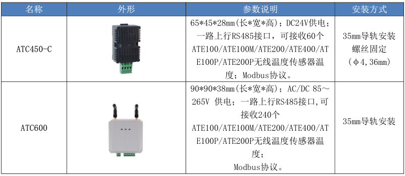 溫度傳感器 a. 電池供電型無線溫度傳感器 安裝于發熱部位,采集溫度量并通過無線方式傳輸的傳感器。 目前無線溫度傳感器有四款: b. CT 感應取電無線溫度傳感器 安裝于斷路器觸頭、母排、電纜搭接點等大電流處,采集溫度量并通過無線方式傳輸的傳感器。 目前無線溫度傳感器有兩款: c. 有線溫度傳感器 安裝于低壓柜接點或變壓器繞組、電機繞組的測溫,采集溫度量并通過有線方式傳輸的傳感器。 目前有線測溫傳感器是Pt100: 接收/顯示單元 a. 接收單元 b. 顯示單元